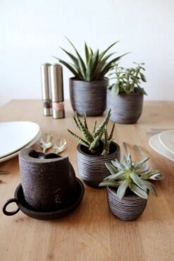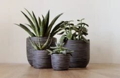 Deze set bevat 4 antracietkleurige potten uit onze all time favourite Nature Rib collectie. Deze set heeft een bijzondere uitstraling dankzij de geribbelde structuur. De textuur van de Rib is geïnspireerd op vlechtwerk met zijn elegante lijnen, waardoor een ritmisch gevoel ontstaat. De antracietkleur combineert natuurlijk en modern zodat deze potten in elk interieur passen.