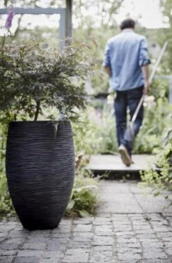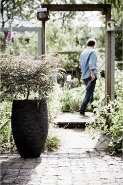 De Rib-textuur geeft deze pot een natuurlijke look. Deze textuur is geïnspireerd op gevlochten riet en de dunne lijnen daarvan. De smalle, dansende lijnen zorgen naast een natuurlijke look ook voor een speelse touch aan deze potten. De Nature Rib NL is verkrijgbaar in de kleuren zwart, ivoor, antraciet en donkerbruin. Deze verschillende kleuren geven iedere bloempot een eigen karakter.