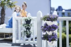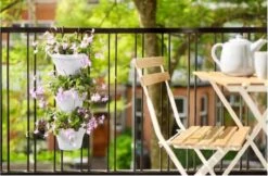 Als jouw terras of balkon niet groot of groen genoeg is, ga jij gewoon heel creatief de hoogte in! Ga verticaal tuinieren en combineer eindeloos veel planten en bloemen met elkaar op je balkon, terras, muur of schutting. De set met 3 potten wordt standaard geleverd met balkon- en muurhaken en is dus overal te plaatsen. De potten zijn voorzien van een handig overlooppijpje. Zo staan je plantjes nooit te nat, zijn ze beschermd tegen wortelrot en worden de plantwortels perfect belucht. Kun jij nog langer van ze genieten!