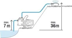 Door het grote zuigvermogen en de hoge druk is deze pomp ideaal voor besproeiing, drukverhoging of het over- of verpompen van kraan-, regen- of chloorwater voor zwembaden.