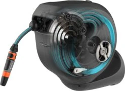 Tuinieren is handiger en gemakkelijker dan ooit met de wandslangenbox RollUp S. Deze helpt uw tuin netjes en opgeruimd te houden en voorkomt hinderlijk struikelgevaar als gevolg van een rondslingerende slang. De praktische slangopslag is eenvoudig aan de muur van uw huis te bevestigen en wordt met een flexibele aansluitslang aangesloten op de kraan. Dankzij de stevige muurbeugel kan de slangenbox meer dan 180 graden worden gedraaid, zodat u elke hoek van uw tuin moeiteloos kunt bereiken. Voor direct gebruik kunt u de tuinslang eenvoudig verlengen tot een lengte van maximaal 15 meter. De tuinslang wordt automatisch in heel korte intervallen vergrendeld zodra u stopt, wat betekent dat de slang eenvoudig en gemakkelijk te hanteren is. Door lichtjes aan het uiteinde van de slang te trekken, wordt de vergrendeling ontgrendeld en een ingebouwde stalen veer met innovatieve RollControl-technologie zorgt voor soepel en gecontroleerd oprollen. De RollControl beschermt de slangenbox en de omgeving tegen schade als gevolg van het te snel inrollen. Om knikken of knopen in de slang te voorkomen, heeft de box een geïntegreerde slanggeleider. Dankzij de slang- en kraanaansluitingen van het Original Gardena System kunt u eenvoudig en flexibel een verlengstuk of ander compatibel Gardena element op de slang aansluiten. U hebt altijd uw Gardena slangopzetstukken bij de hand. Ze kunnen onder de muurbeugel worden bevestigd en daar worden opgeborgen om ruimte te besparen. De Gardena wandslangenbox is UV- en vorstbestendig en kan het hele jaar door probleemloos aan de muur van het huis blijven bevestigd. Het hoogwaardige materiaal biedt u een lange levensduur en gebruiksgemak zonder onderhoud. Samen met de wandslangenbox ontvangt u een muurbeugel, een flexibele aansluitslang, alle benodigde Original Gardena System en montageonderdelen en een mondstuk met twee verschillende sproeiopties. Dit hoogwaardige product wordt geleverd met een garantie van vijf jaar van Gardena. Bewatering die altijd gebruiksklaar is , dankzij de Gardena wandslangenbox RollUp S.