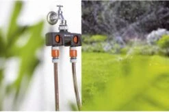 Met de Gardena 2-weg-waterverdeler kunt u gelijktijdig twee accessoires aansluiten op één kraan. De uitgangen zijn traploos regelbaar. Op de verdeler kunnen twee Gardena besproeiingscomputers of watertimers worden aangesloten. De 2-weg-waterverdeler kan met het Prof-System kraanstuk (art.nr. 2801-20) worden omgezet in het Gardena Prof-System voor een grotere waterdoorvoer. De Gardena 2-weg-waterverdeler is geschikt voor 26,5 mm -waterkraan met en 33,3 mm -draad en 21 mm -waterkraan met 26,5 mm -draad.