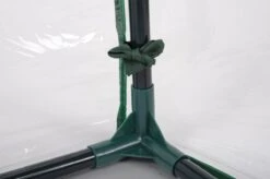 Deze tuinkas is een zogenaamde tunnelkas van circa 130 centimeter lang, 50 centimeter breed en een hoogte van ongeveer 60 centimeter. De kas heeft geen bodem; je zet hem direct op de aarde waar je gewassen staan. De doorschijnende folie benut optimaal de warmte en het licht van de zon, waardoor je een microklimaat creëert met een goede temperatuur en vochtigheid. De folie beschermt je planten tegen schadelijke insecten en weersinvloeden, zoals wind en regen. Aan beide uiteinden van de foliekas zit een rits, zodat je de folie goed kan openen om bijvoorbeeld je planten water te geven. De opgerolde folie kun je met lintjes vastzetten. Zo laat je de zaailingen ook afharden, waardoor ze wennen aan de temperatuur buiten de kas.
