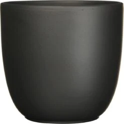 Set van 2x stuks plantenpot/bloempot van keramiek in de kleur zwart in strakke matte uitvoering. Diameter 19.5 cm en hoogte 18.5 cm. Mooie bloempotten voor binnen gebruik. Serie: Tusca. De bloempot met een prachtige mat finish aan de buitenzijde is van Duits keramiek. Tip: zet een schotel onder de pot, of plaats een binnenpot/hoes om eventueel lekken tegen te gaan. Potten van gebakken steen zijn niet altijd 100% waterdicht.