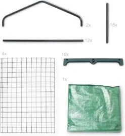 De kas is met de geïllustreerde handleiding makkelijk en zonder gereedschap op te bouwen. U moet alleen het gepoedercoat stalen frame in de openingen van de plastieken onderdelen steken.
